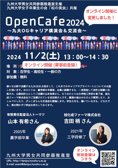 2024.11.14 【報告】「Open Cafe 2024 ~九大女子卒業生に聞く 学生生活やキャリアについて」を開催しました